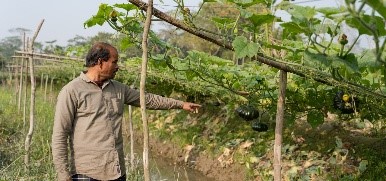 Bangladesh lijdt zwaar onder klimaatverandering. Het land kampt steeds vaker met cyclonen en overstromingen, regen valt onregelmatiger en de stijgende zeespiegel zorgt voor verzilting van landbouwgrond. Boeren hebben grote moeite om te overleven. Kerk in Actie helpt boerengezinnen om zich aan te passen aan klimaatverandering. Zo leren zij bijvoorbeeld om gewassen op een bamboe geraamte boven de grond te verbouwen, zodat ze bij overstromingen niet wegrotten. Ook leren dorpsgemeenschappen met waarschuwingssystemen en evacuatieplannen voorbereid te zijn op rampen.